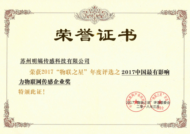 2017中国有影响力物联网传感企业奖